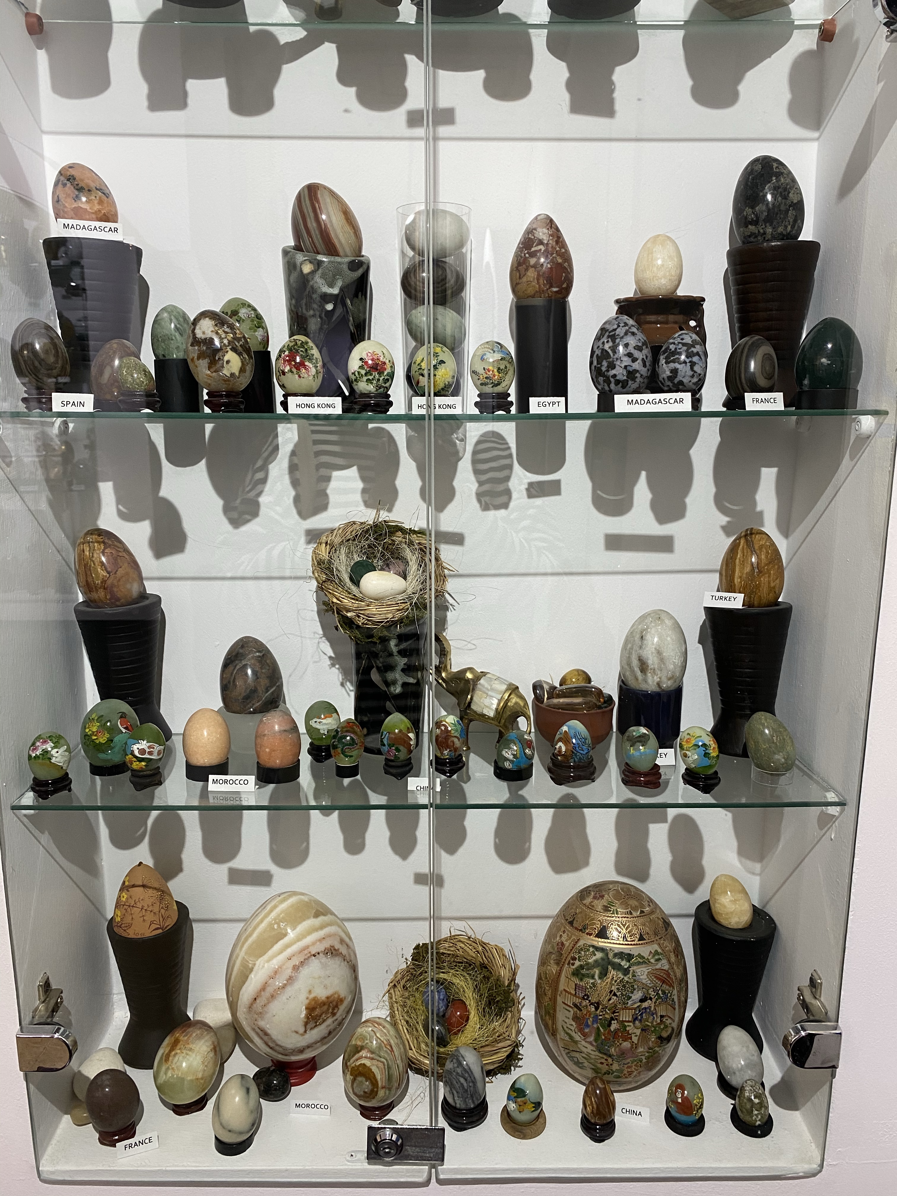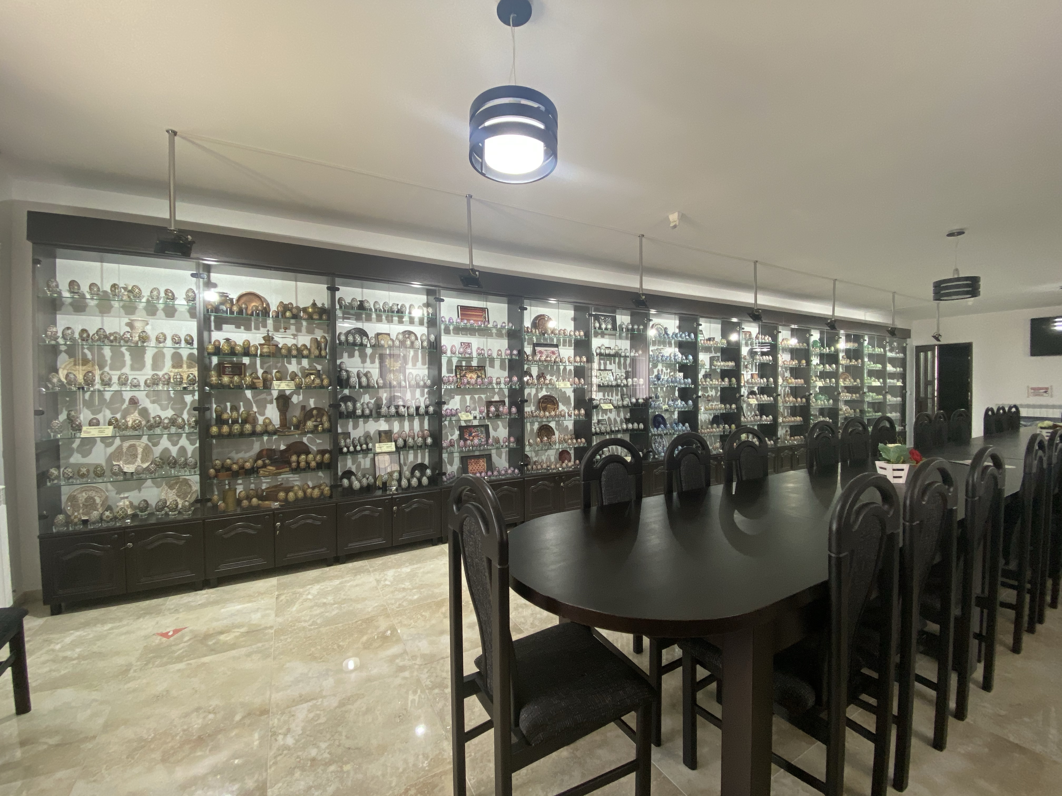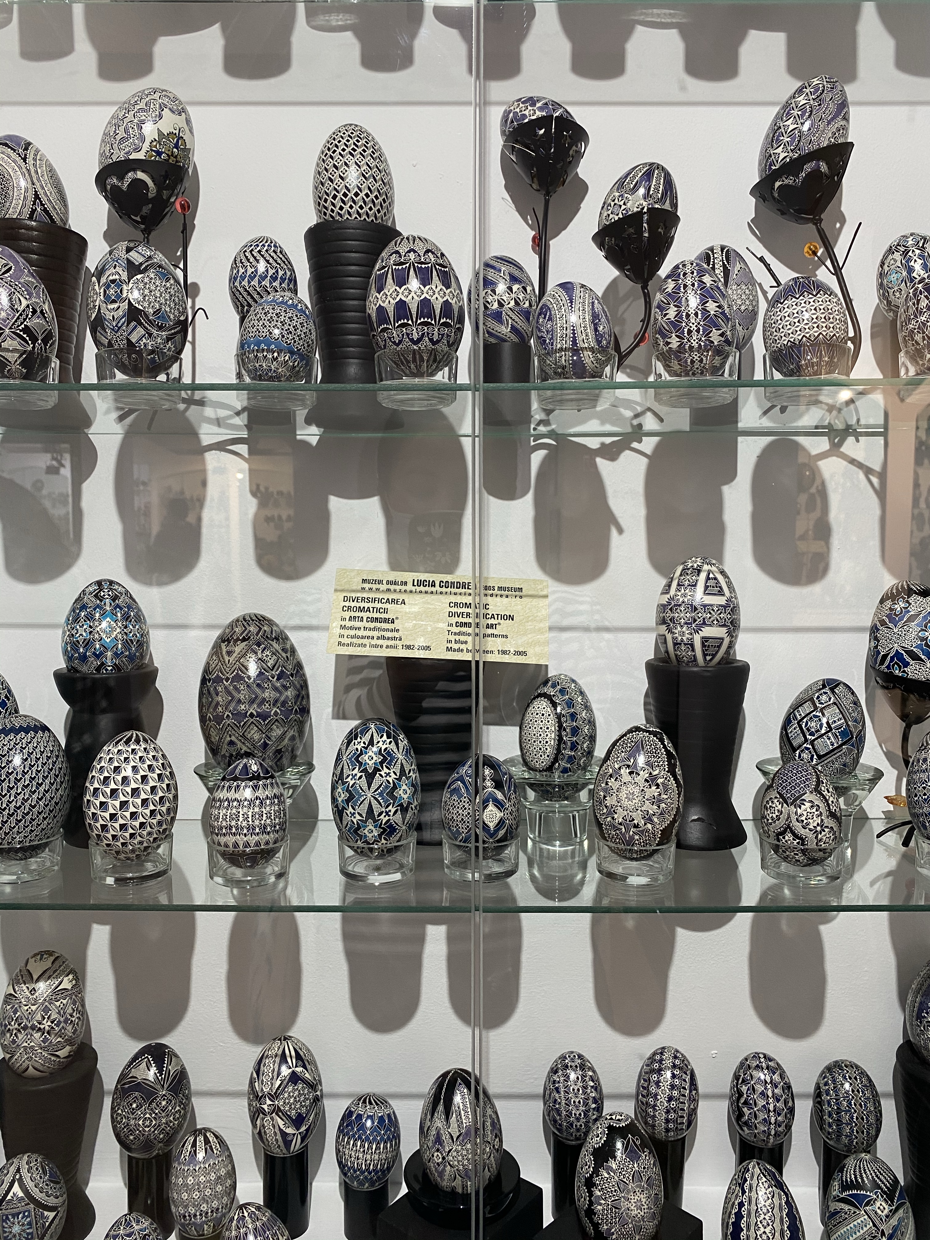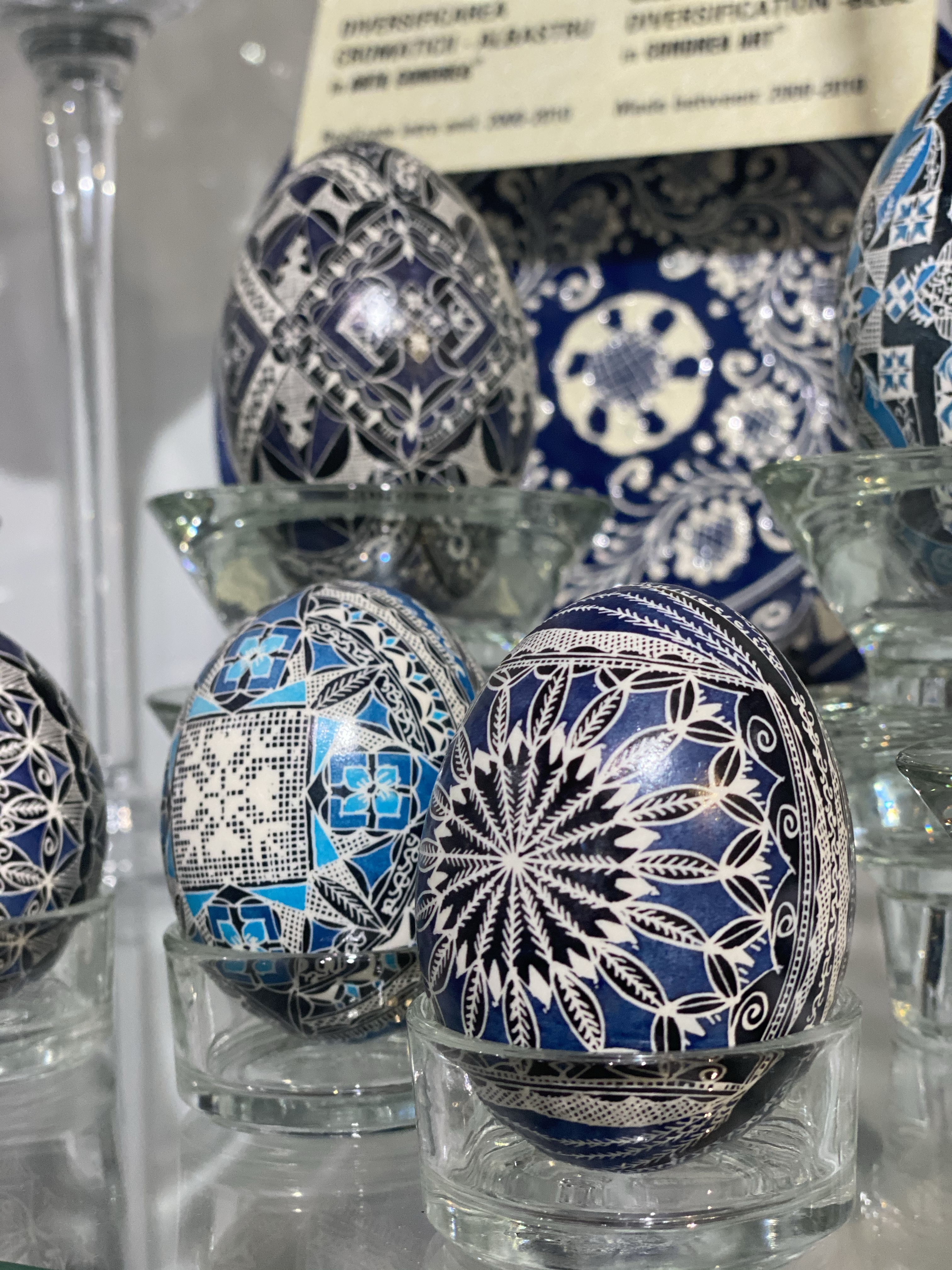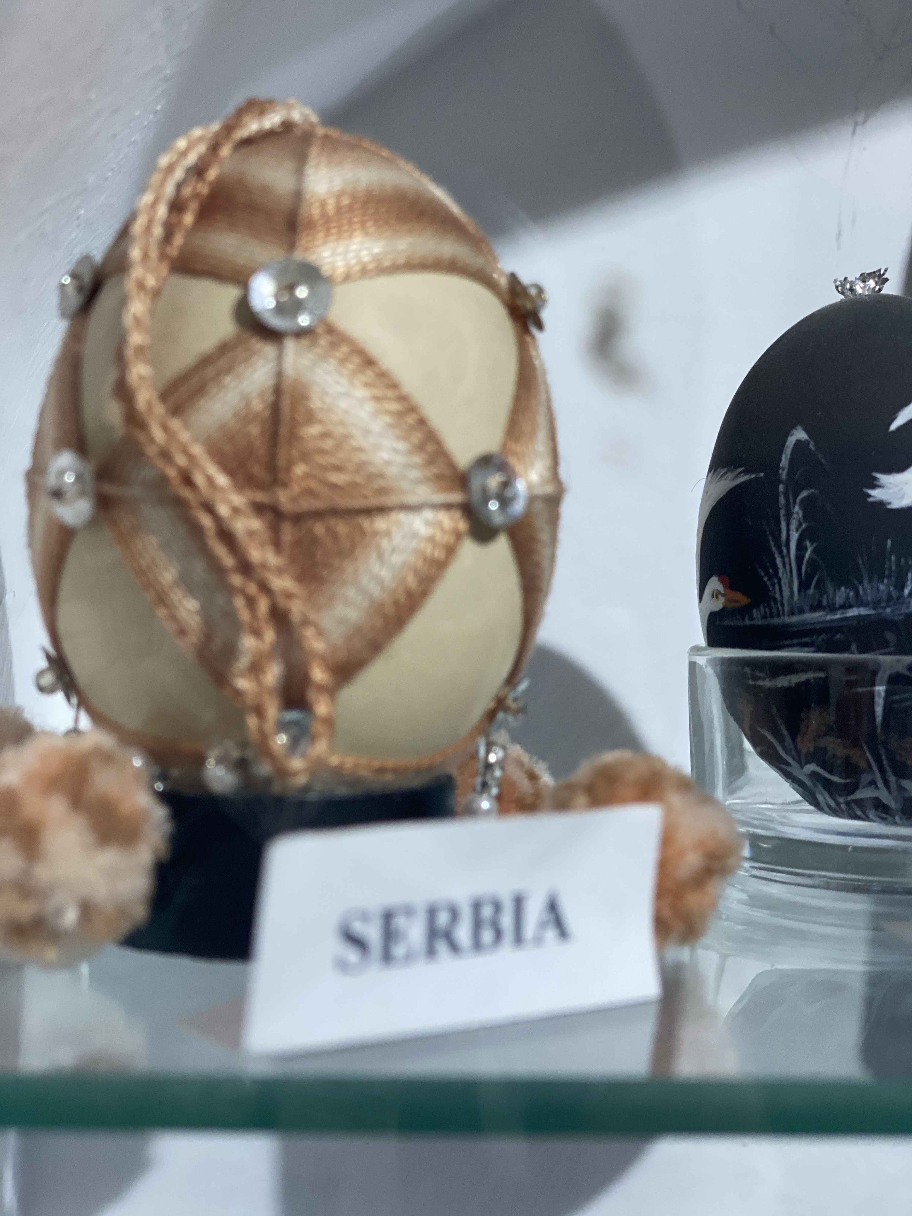 美術館1階、入り口付近にはショーケースとイースターエッグの染色方法を紹介するビデオ、次の部屋にはショーケースと子供たちが体験できるテーブルがあり、その奥にもショーケースと、一階だけでもかなり見応えがあります。さらに2階には、ルチアさんの作品に加え、ルチアさんが世界中の競技会や展覧会に参加する中で、他の国の方と交換した世界各国のイースターエッグの展示、地元のアーティストの作品を紹介するコーナーなどもあり、その違いを見るのもお楽しみポイントと言えるでしょう。世界各国から集まった卵のショーケースには日本人の方の作品もありました。おそらく、日本にはイースターエッグという習慣はないと思いますので、何かのきっかけで卵の染色を始めた方々だとは思いますが、どの作品にも日本的な柄やデザインが施され他の国々の卵に負けず劣らず、しっかりと存在感を示していました。