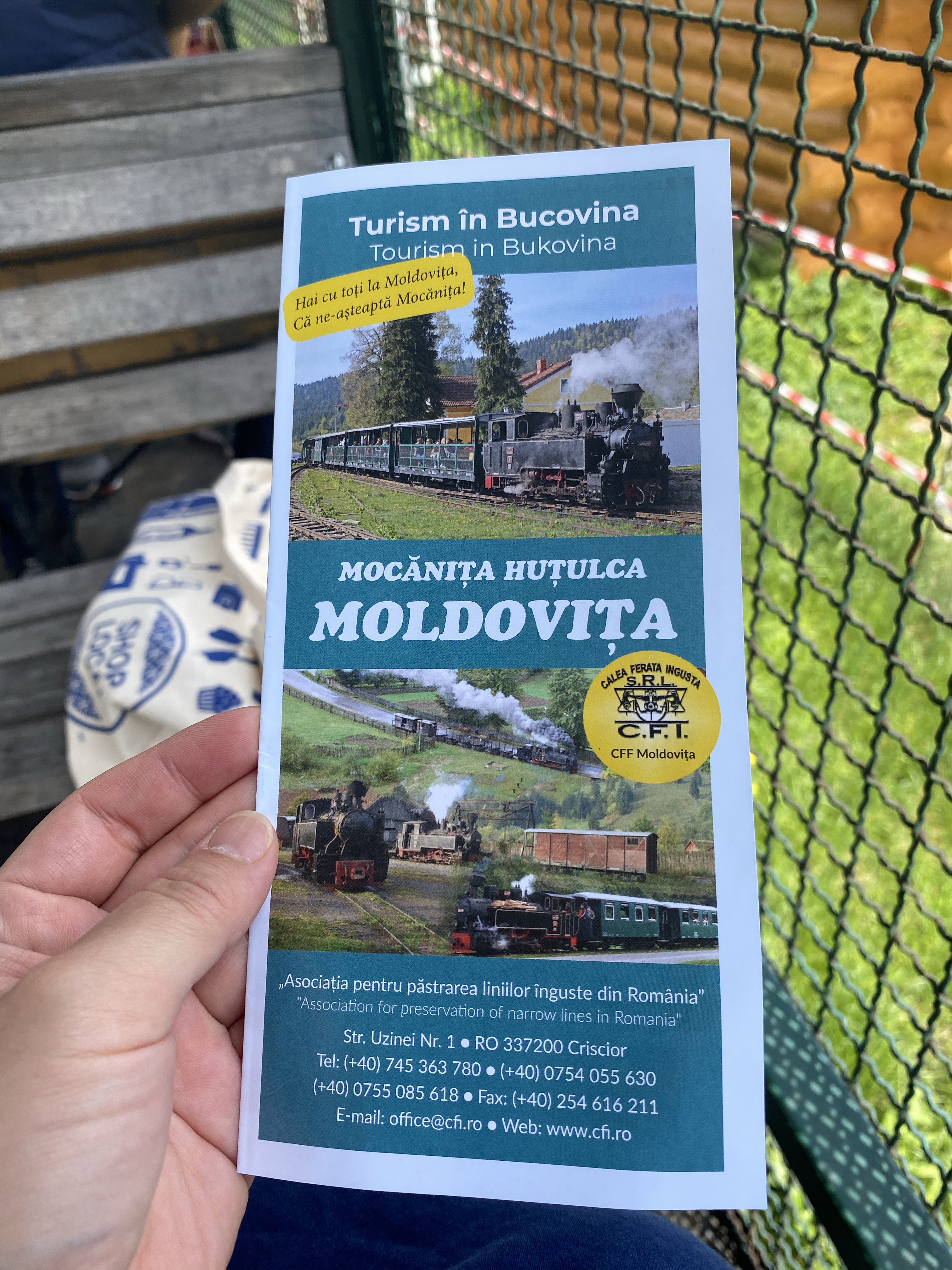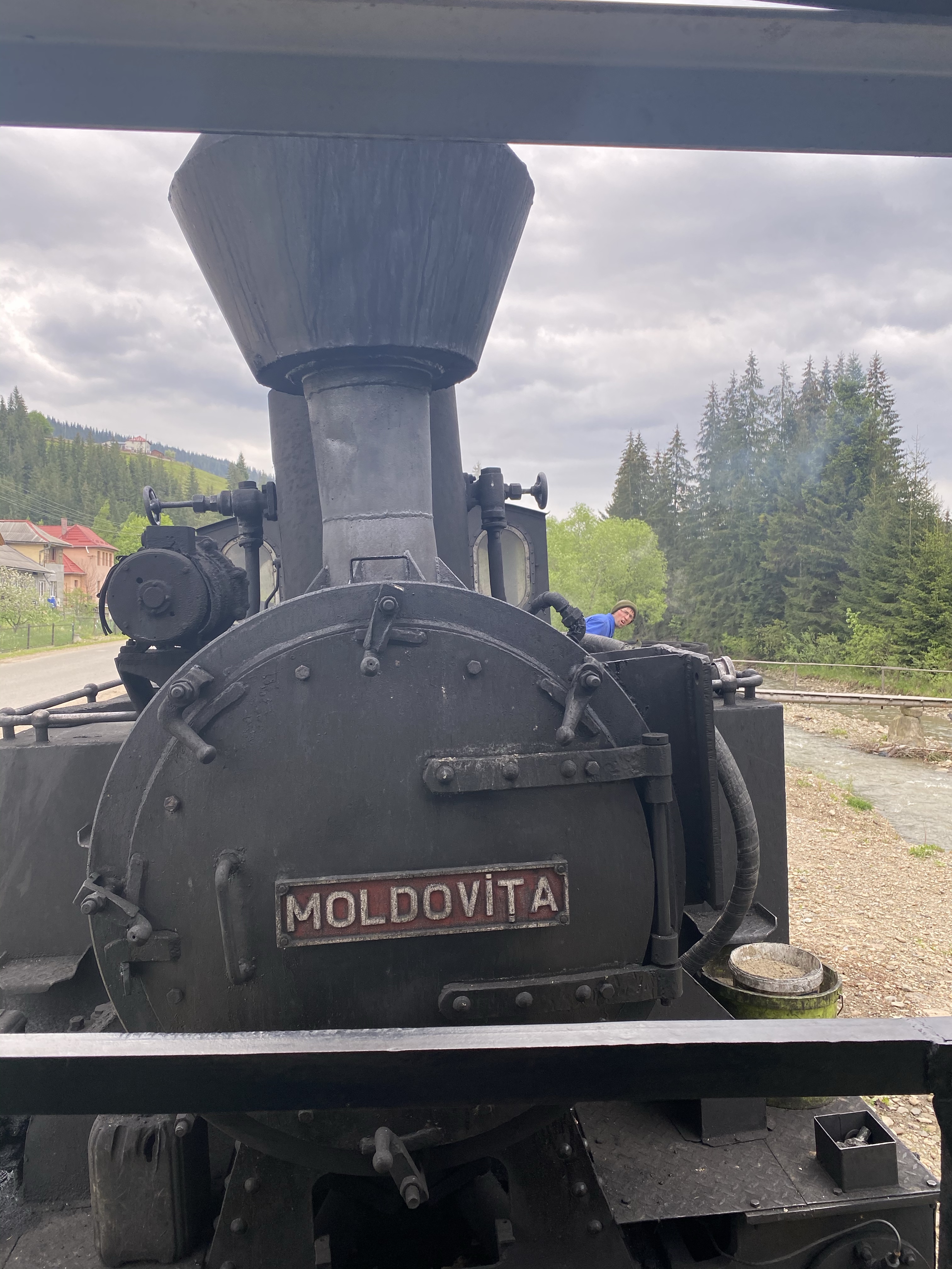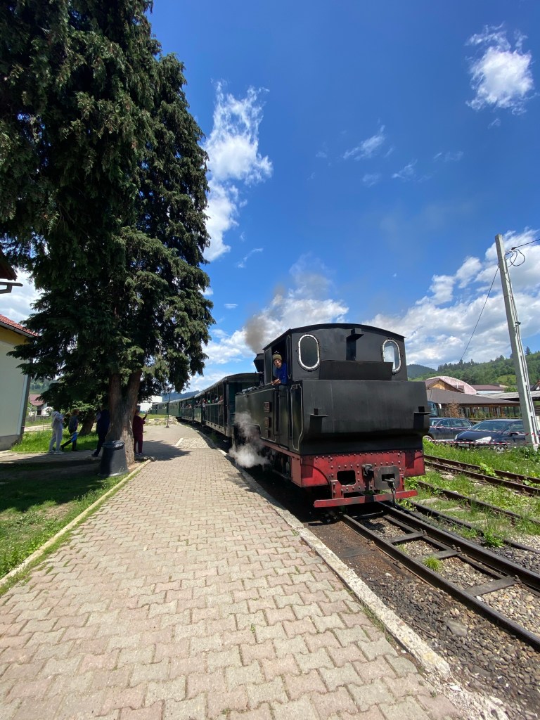 朝食のあとはコーヒーをいただき、少しのんびり過ごして出発しました。まず向かったのはMocăniță (モカニツァ)と呼ばれる観光用蒸気機関車。ペンションでもらったパンフレットでは発車時刻が10時半となっていたので、10時に向かいましたが、最初の便は既に出発してしまったとのこと。2便の出発時間を確認して、乗り場周辺の観光地に向かいます。