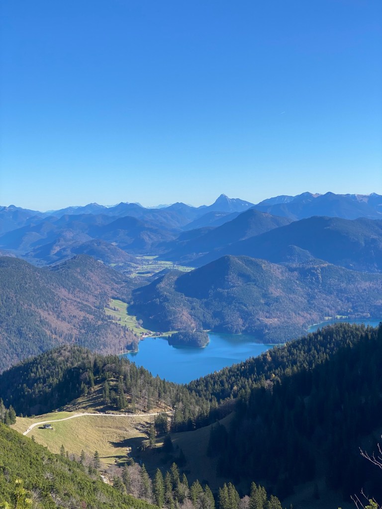 出掛けたのは、ミュンヘン市内から南へ車で1時間半程度の場所にある「Herzogstand」。朝7時半にミュンヘン市内で待ち合わせをして、車で目的地を目指します。早朝ということもあり、車はかなり少なく1時間程度で目的地へ到着。ふもとに駐車場があり、そこから山道に入ります。駐車場に着いたのは、9時前でしたが、すでに満車近く、多くの人が早朝からハイキングを楽しんでいることが伺えます。山道は整備されているので、登山初心者でもあまり装備を気にすることなく登ることができました。とはいえ、途中はかなりの傾斜を感じる山道が続くので、体力に自信がない方はゆっくり登ることをお勧めします。リフトもあるので、リフトを利用することもできますよ。