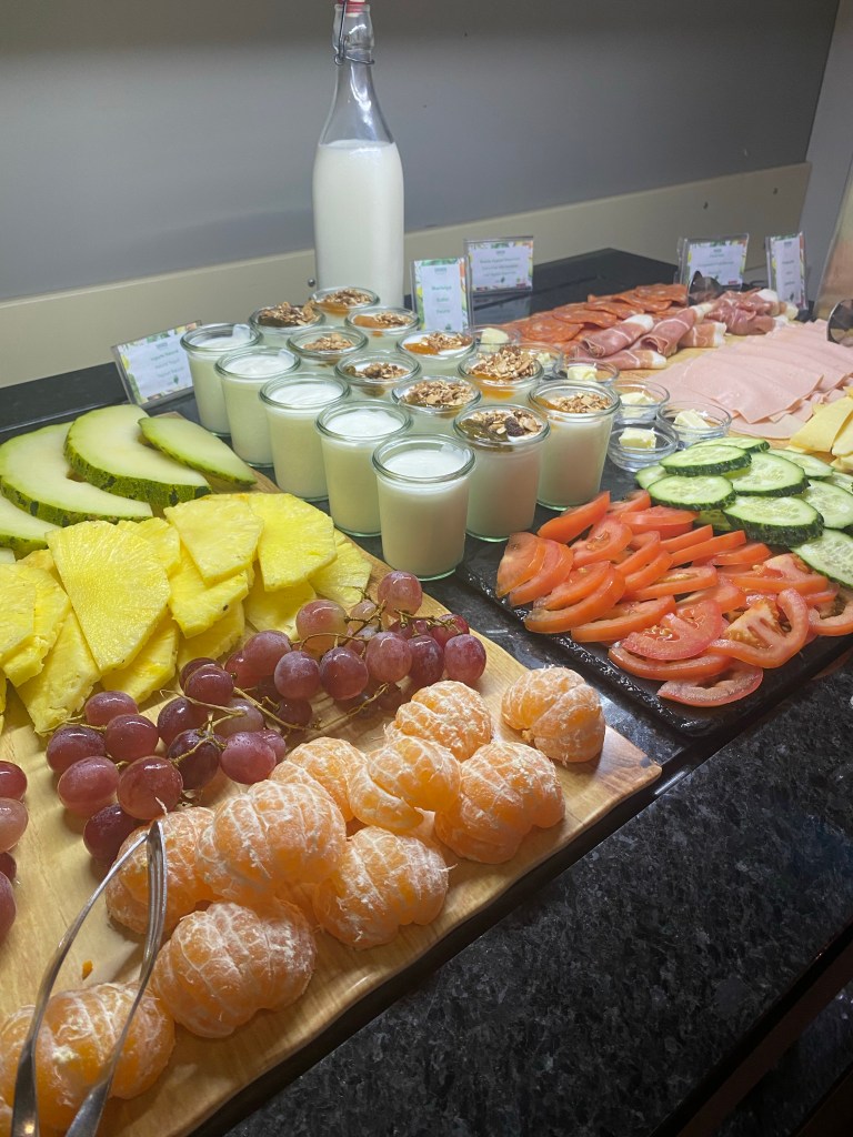 2日目は朝早く目が覚めました。朝食付きのホテルだったので、食堂に行ってみると想像以上に素敵なビュッフェ。普段はコーヒーのみで済ませてしまいますが、せっかくなので朝食をいただき、素早く身支度をして早速周囲を散策することに。
