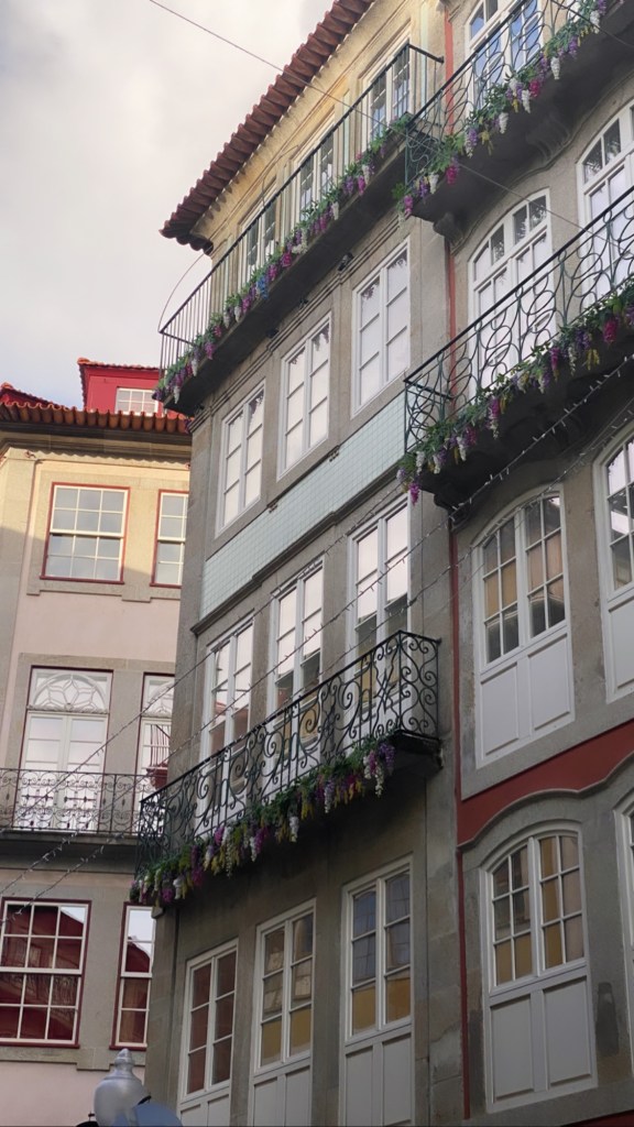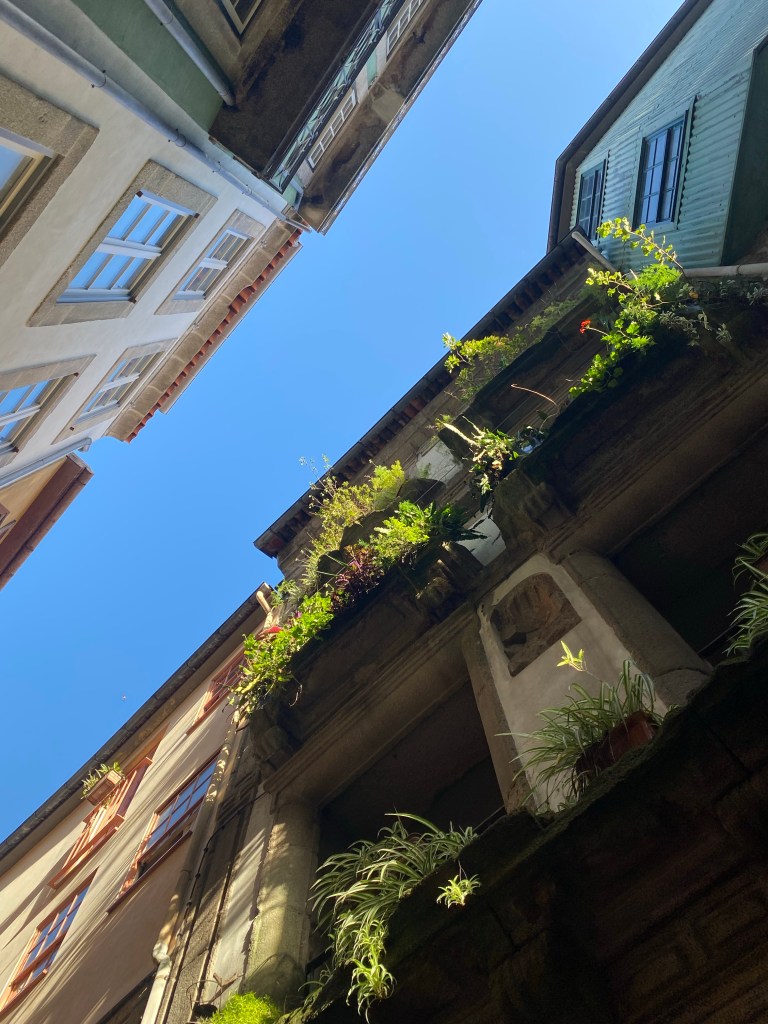 滞在先は、ポルトの人気観光地の一つ「ポルト・サンベルト駅」近くだったのですが、ホテル近くの大きな通りに出てみると、その通りからたくさんの路地が見えます。そのうちの一つがなかなかの急勾配。路地の出立に興味をひかれて、丘を目指して登ってみることにしました。ポルトは全体的に坂道が多く、長崎のような雰囲気です。坂道に沿ってたくさんの古い住居が連なって立っており旅情を誘います。