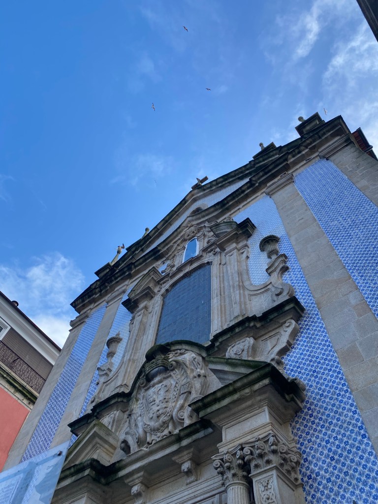 そのまま川沿いを少し歩いてまた大きな通りへ戻ると、アズレージョに彩られた教会に辿り着きました。「Igreja de São Nicolau(サン・ニコラス教会)」です。ポルトの街中にあるカトリック教会は、箱型の建物が多く、ドイツでよくみる大聖堂とは異なる造りをしています。全面ではないもののファサードは青いアズレージョで彩られており、小さな教会ですがとても魅力的。
