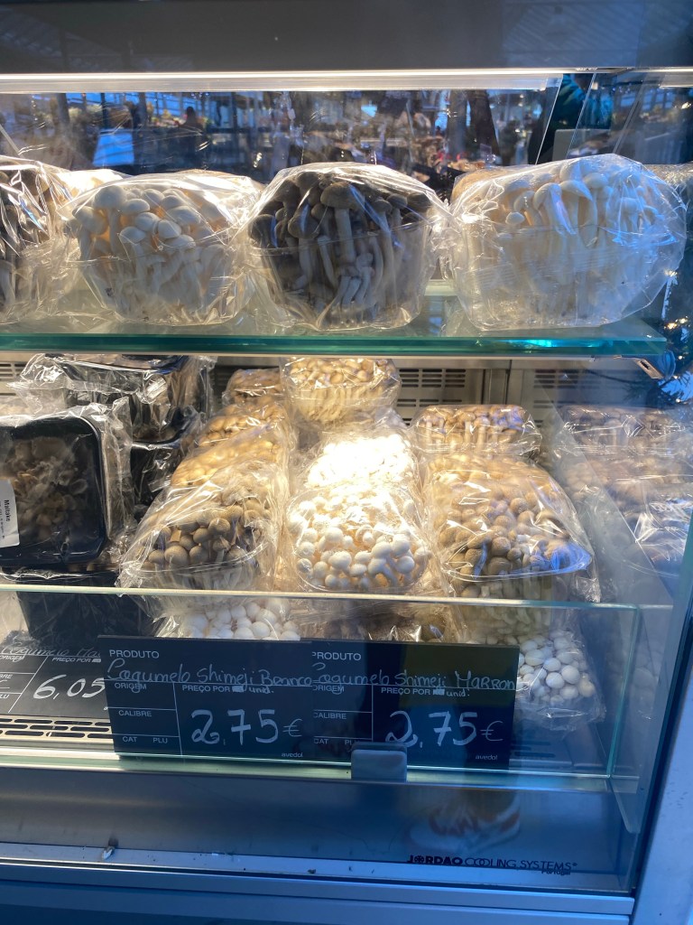 次に目指したのは、ポルト市民の台所、「ボルハオ市場」へ。午後に訪れたこともあり、半分くらいは閉まっていましたが、野菜や果物などの八百屋さん、鮮魚、精肉店、チーズや蜂蜜、サーディン缶などのお土産、生花など、地元の人も観光客も楽しめるラインナップの小さな商店が並びます。私は特に買いたいものもなかったので、のんびりと市場内を歩くのみ。八百屋さんにきのこ類が充実していて羨ましいなと思いました。
