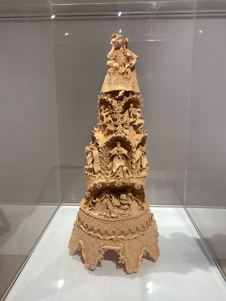 細い塔へと登る前に、期間限定で芸術家の作品展示が行われていました。細やかな細工を施した粘土で、聖書の一部を描いた作品が10点程並んでおり、その制作過程もビデオ上映されていたので、興味深く拝見。